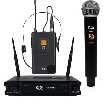 O Microfone KDS-W392C da marca Kadosh é um sistema com dois microfones que trabalham na frequência UHF, composto por um headset e um microfone de mão, sendo o sistema de transmissão de áudio ideal para eventos e locais de pequeno porte, como instalações em igrejas, salas de conferências, salas de aulas e espaço para apresentações ao vivo. O microfone headset do sistema KDS-W392C é leve e possui áudio com nitidez, capaz de proporcionar agudos claros e graves presentes. Fácil de usar, basta apenas conectar o conector do headset ao bodypack na cintura, proporcionando uma maior liberdade de movimentação, sem perder a qualidade de áudio.O microfone de mão funciona através de 2 pilhas alcalinas AA de 1.5V. Para usar, basta apenas ligar o microfone e o receptor, a seleção da frequência será feita de forma automática. Além disso, possui botão Liga e Desliga e Display LCD para visualização de informações. Para inserir a pilha, basta girar no sentido anti-horário a parte inferior do microfone (abaixo do botão). O sistema conta com um receptor bivolt, que recebe todos os sinais e eletronicamente separa o de qualidade superior.